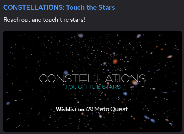 Grant shared CONSTELLATIONS, a new VR experience they’re launching into Early Access on the Meta Horizon Store in early December. Wishlist it Here!