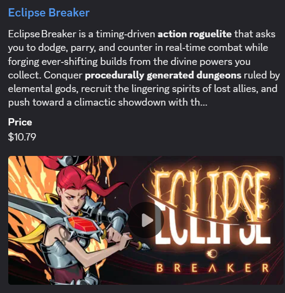 Mike Sennott shared that new game just dropped! Eclipse Breaker is an action roguelike set inside a classic RPG. There’s a pretty expansive free demo too – check it out.