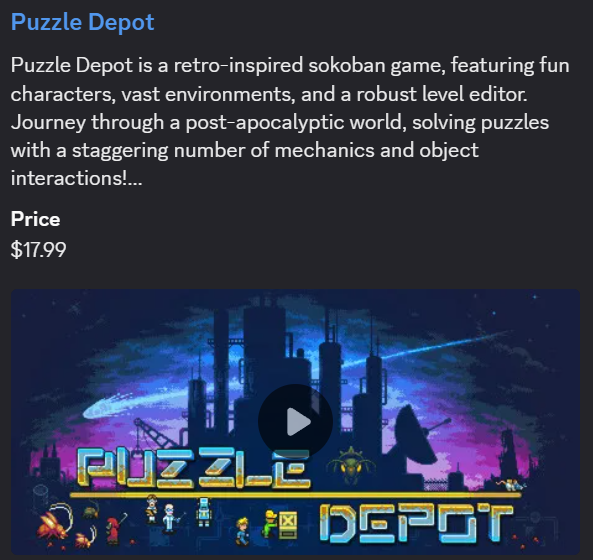 Jeremie: You can check out our newly released game Puzzle depot here: https://store.steampowered.com/app/3108190/Puzzle_Depot/