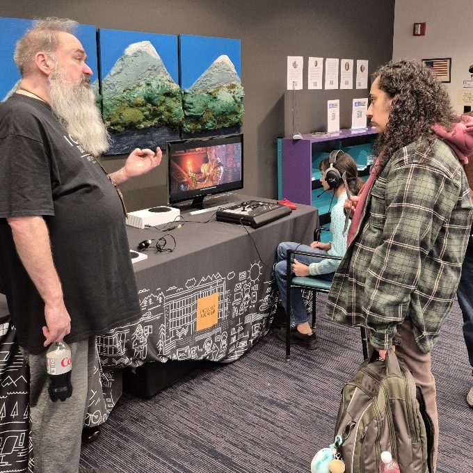 The Washington Talking Book and Braille Library’s event room was transformed into a gamer’s playground featuring 10 gaming stations, including 2 Xbox Series S setups, 1 racing wheel, tablet and phone games, and audio first-experiences. Half of the showcased games and mods were created by local Seattle Indies developers, highlighting the incredible talent and inclusive mindset of our indie scene.