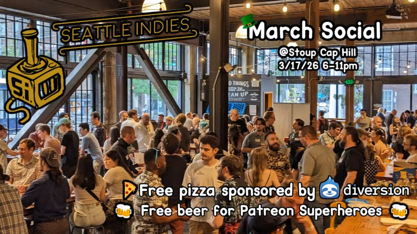 We’re already half-way through the month with local events in full swing. Our next major meetup is tonight at Stoup Brewing Capitol Hill for the always lively Seattle Indies Social. There will not be pizza this month unfortunately but we do have cookies and great game devs to share stories with, relive your favorite memories from GDC, stave off the post-con blues just a little longer or show off the hot new game idea you are working on. All are welcome so we hope to see you there.