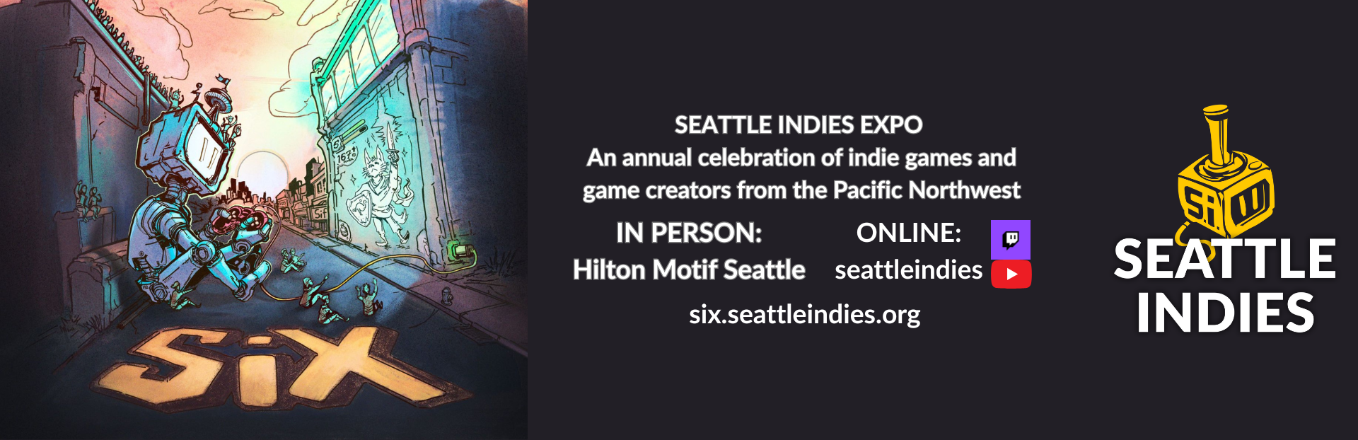 SIX is back this Sunday at Hilton Motif Seattle with over 40 incredible indie games!