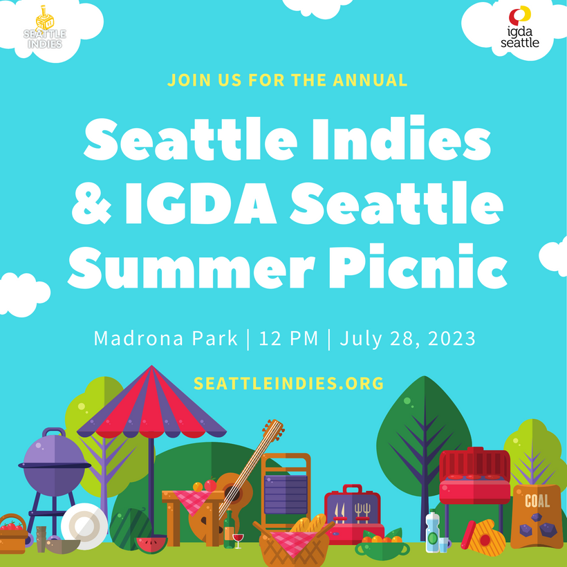 Save the date! The annual Seattle Indies and IGDA Seattle Summer Picnic will be happening on Sunday July 28, 2024 at Madrona Park. Bring your families, friends, your favorite picnic food to share, and your appetite. We’ll be serving up burgers, dogs, vegetarian options, soft drinks, and snacks all day. We will bring some lawn games for you to play, feel free to bring your own too.